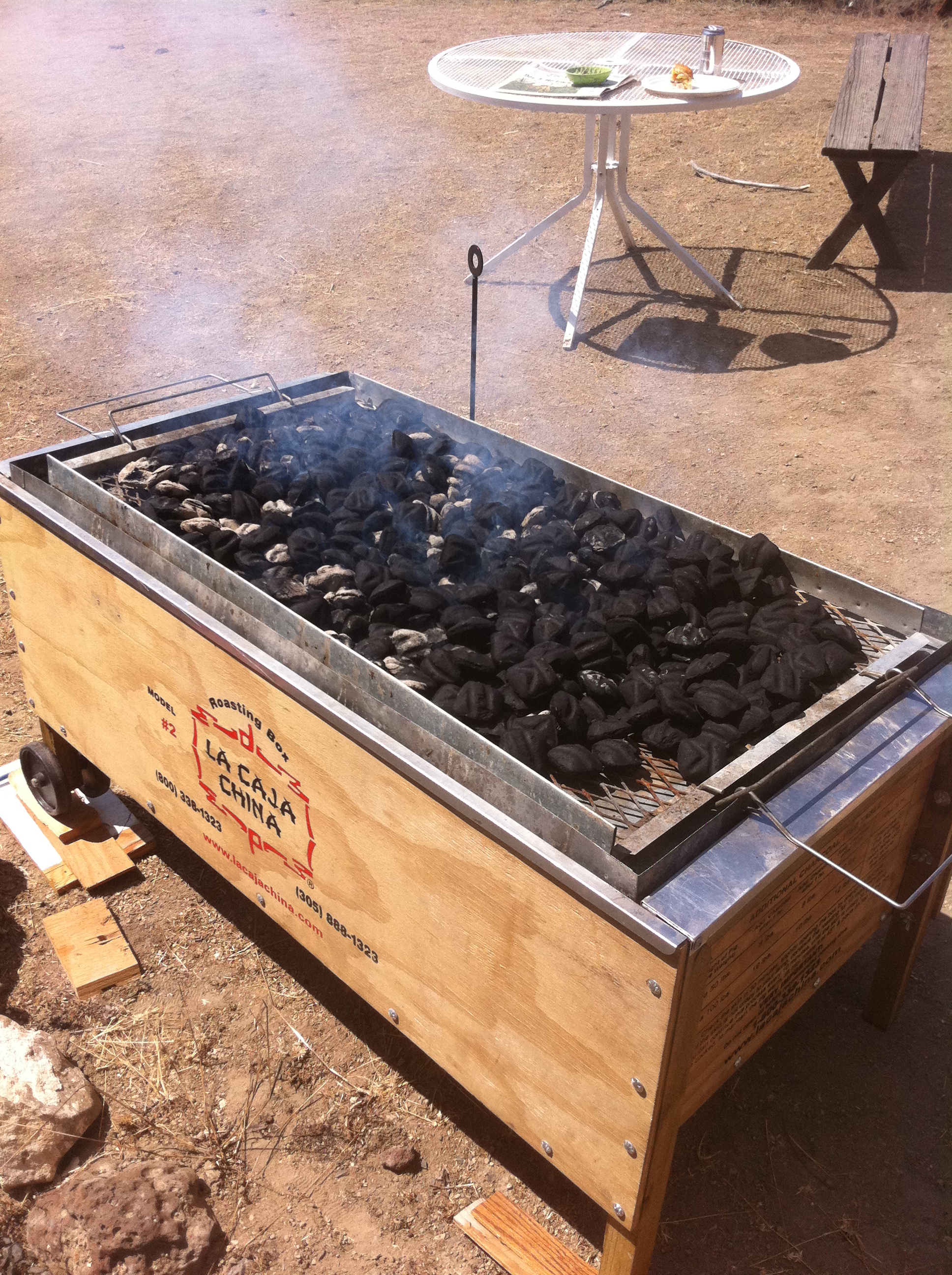 Wayne is still over with his water bath brisket. It has been in the Caja China for roughly two hours and I think at this point he starts to realize he might be in trouble.