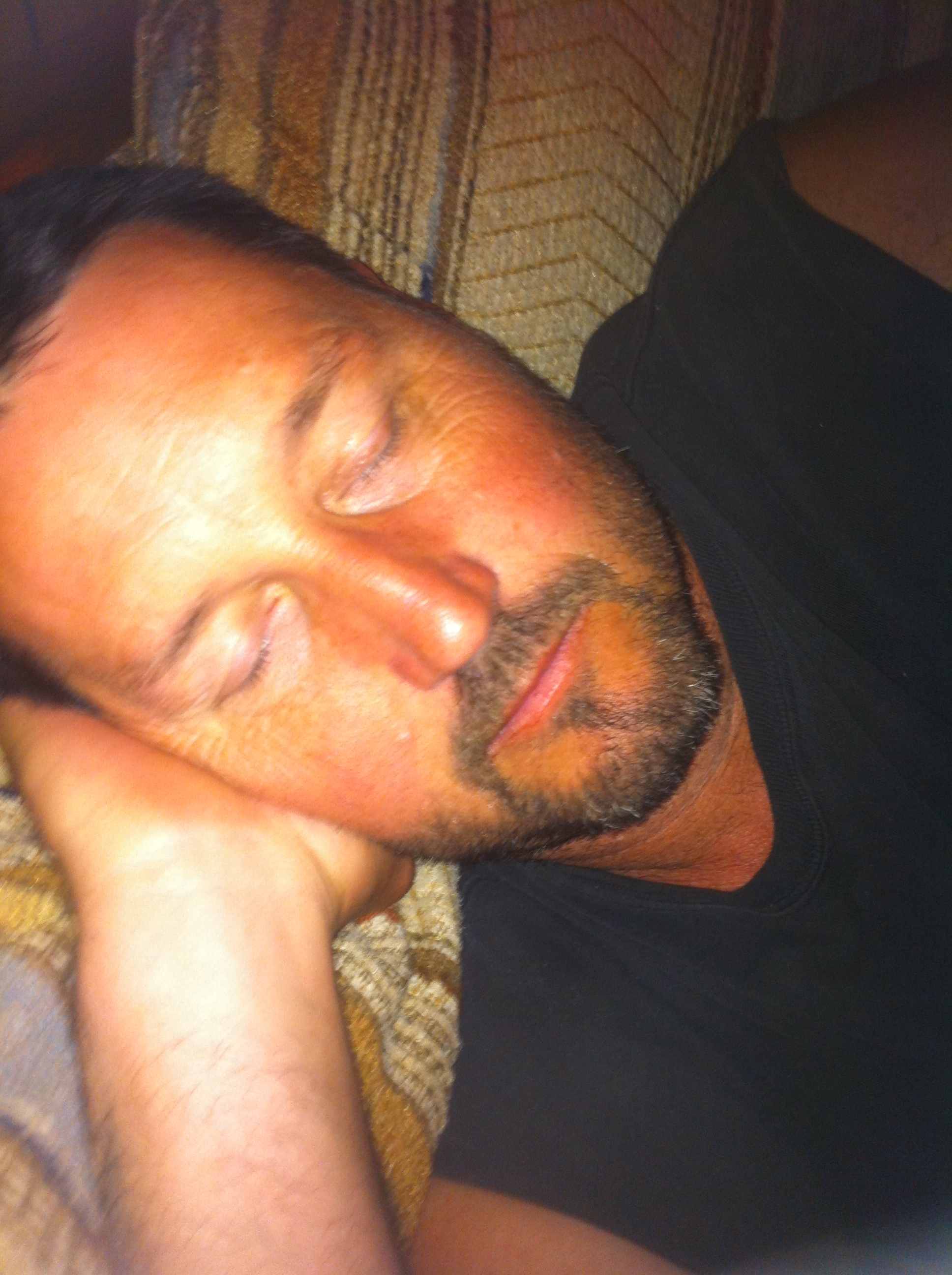 Wayne, returned to his couch as a defeated bbq pit master. I know he is still awake in the picture but faking he is asleep. He is thinking, “That brisket is one piece of shitty meat” then he and his belly full of tri-tip went to sleep until his wife told him to go get in his bed.