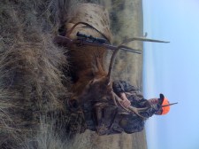 Elks are big and can run a long way, especially in the high desert. Their only defense is to run long and fast, so when you do engage them you have one shot because when they stop running they are in another county all together. Grover, a long time good friend and I had a successful hunt one evening and as the herd passed under him in a sage brush for water he patiently awaited a nice 6 point and took him at 30 yards. I was back behind him helping him call and watched the entire hunt unfold. His patience allowed him a clean shot at a nice bull that fell where he had shot him. It was so quiet that the entire herd had no idea what happened and just walked off.