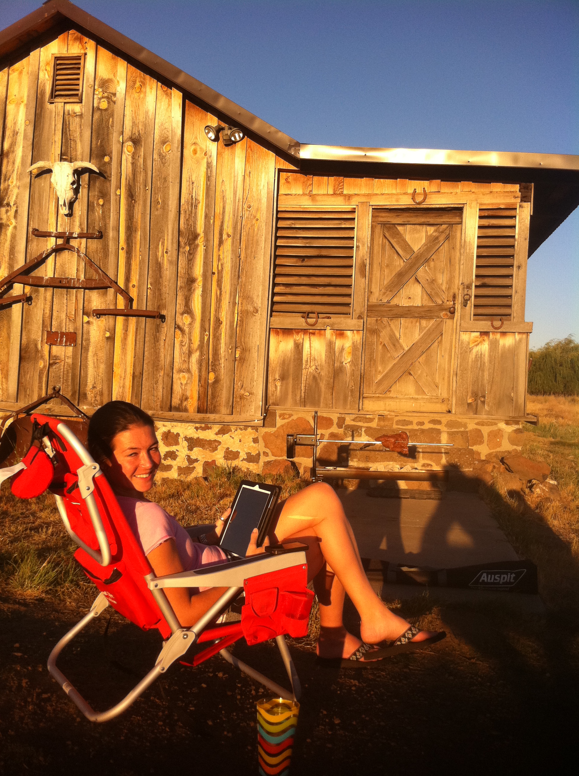 That night I cooked a chicken, took a little longer so Steph and Mady went to the trailer to lay down and Steph never made it back to dinner that night. This could be the all time best picture ever taken coming up folks. I am going to give a thumbs up to the Auspit BBQ and shout out to invest in one of these BBQ. They are fun and make you drink a lot more beer watching your meat go around in circles. I leave you with this photo.