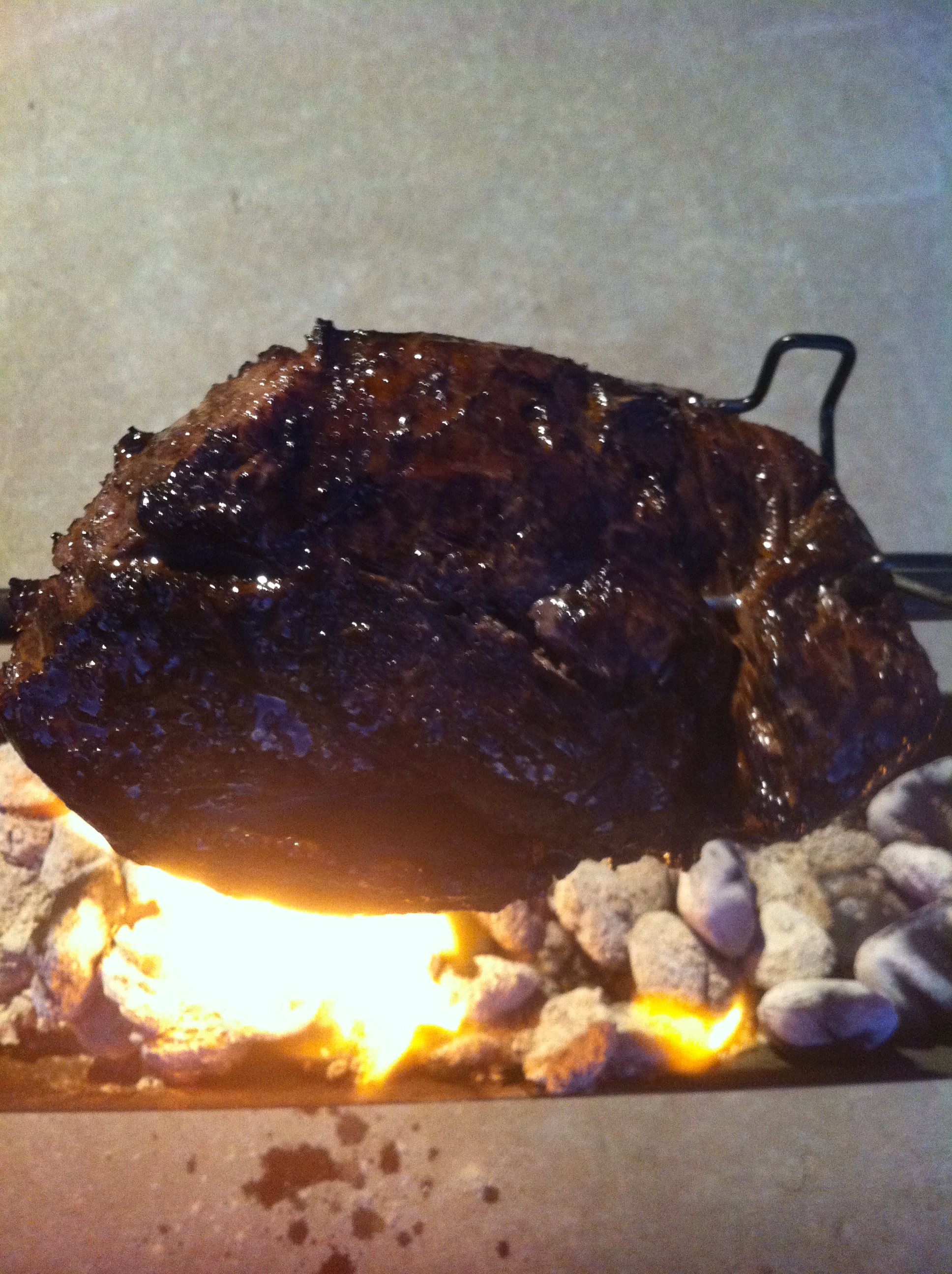 So I assemble my Auspit, which takes about 2 minutes and spear my meat and begin to the slow process. Notice I use a charcoal trough, that is an add on but I like it because I can use it anywhere.