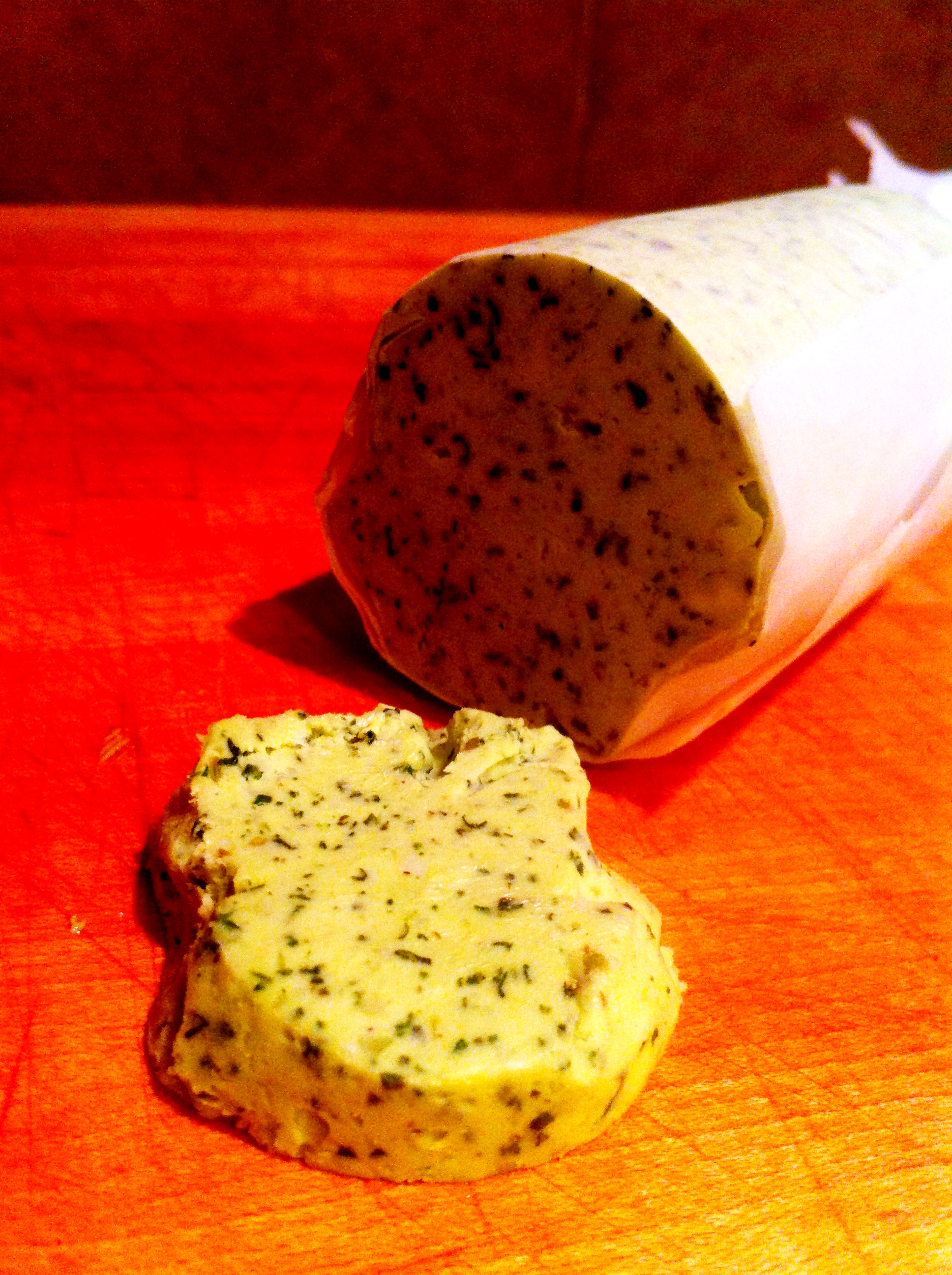 As my steaks are becoming a masterpiece I take the special butter out of the freezer and make a cut.