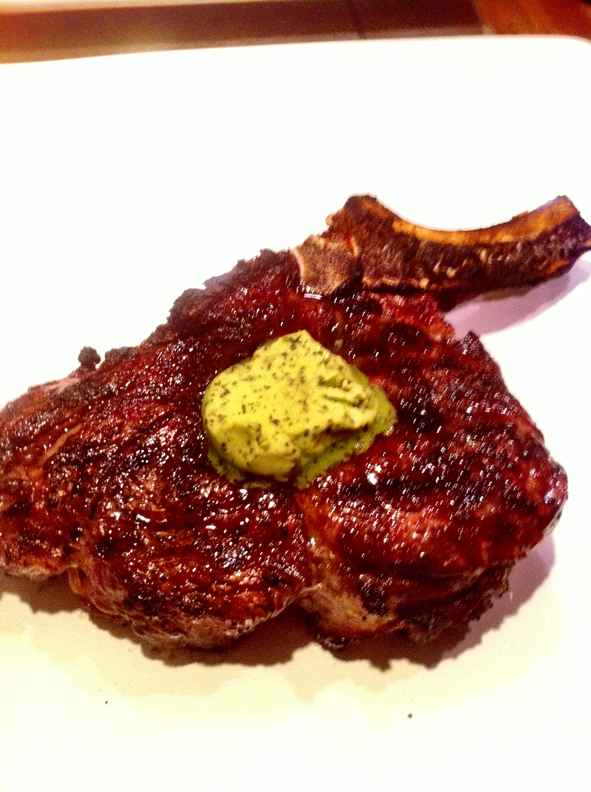 Now when the steaks are at medium rare I pull them off the grill and let them sit for 8 minutes and put the special butter on the meat to allow it to melt.