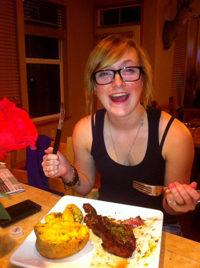 My baby gets a STEAK!! She is a very happy daughter!!