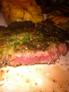 She offers me a bite, and we take a photo of the perfect color for a ribeye steak. It is perfect.