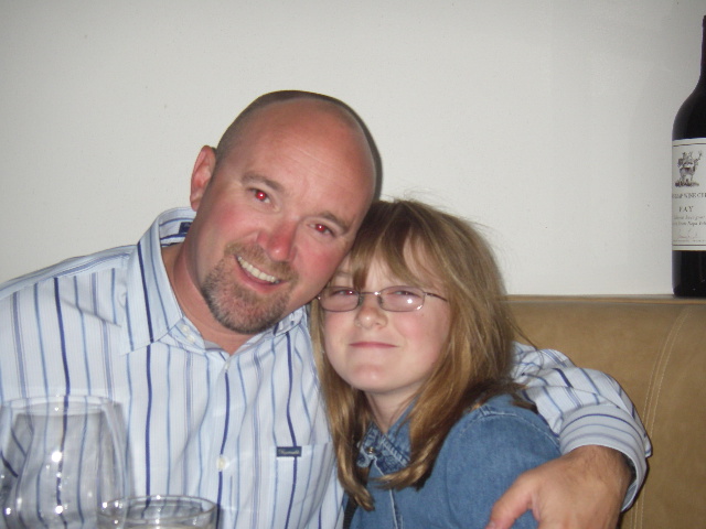 Megan 12 years old with her Daddy at Mortons...she isnt smiling