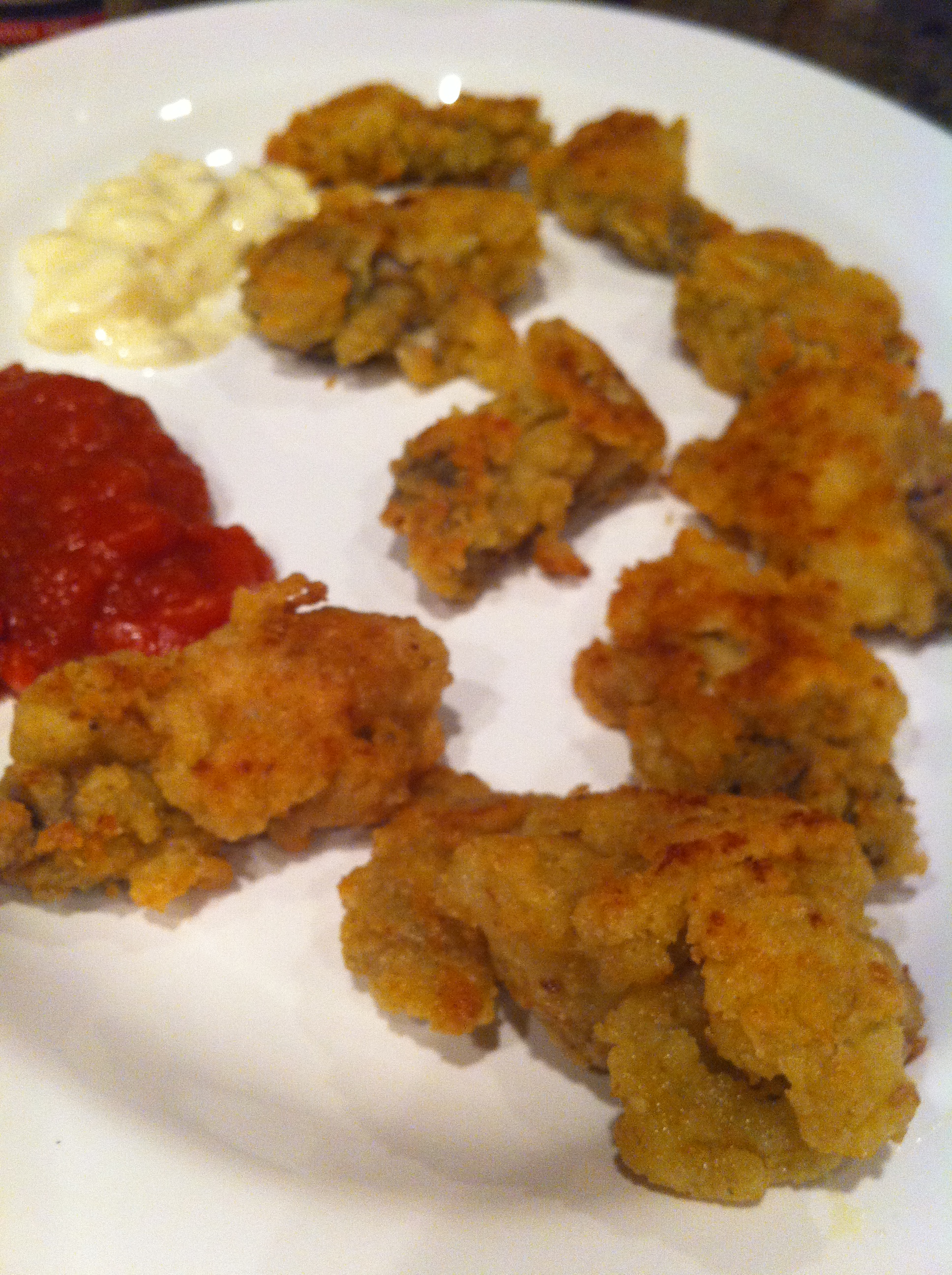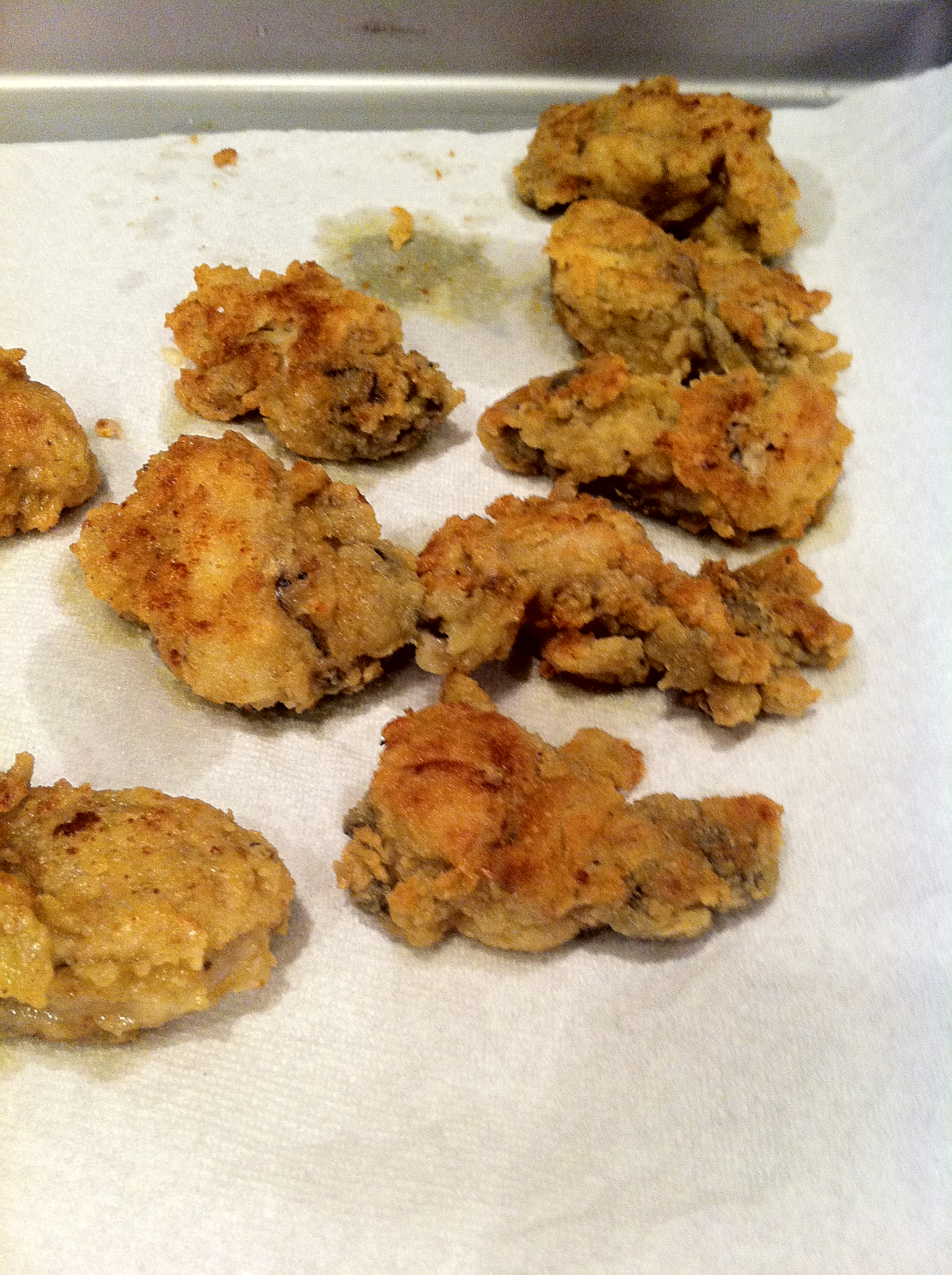Pull the meat at 135 degrees and let sit. While Wayne waits to cut the meat I do up a batch of fried oysters.