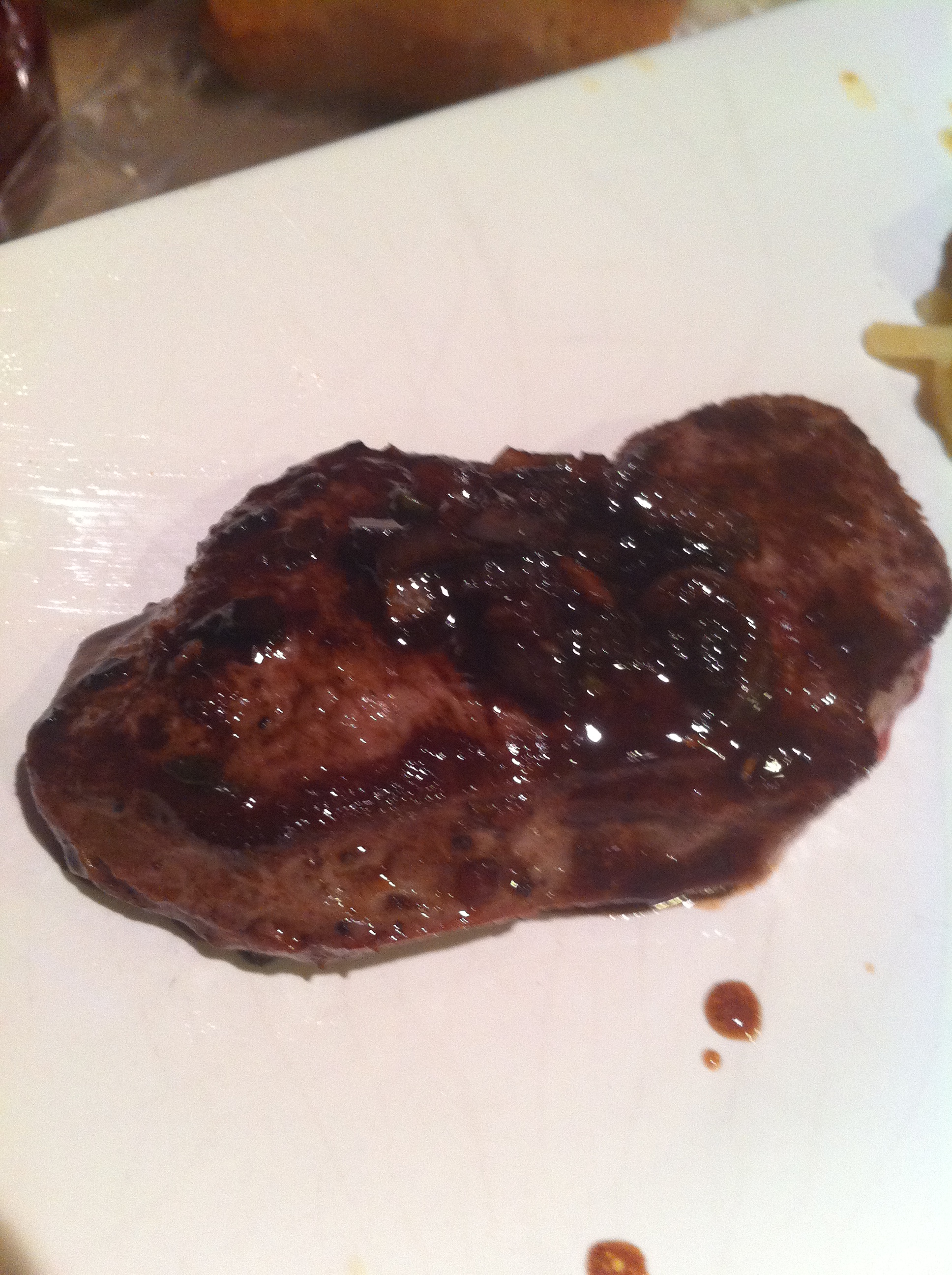 Well now it is time to put it on the plate. I thought a nice rosemary balsamic reduction would be nice with a glass of Oregon Pinot.