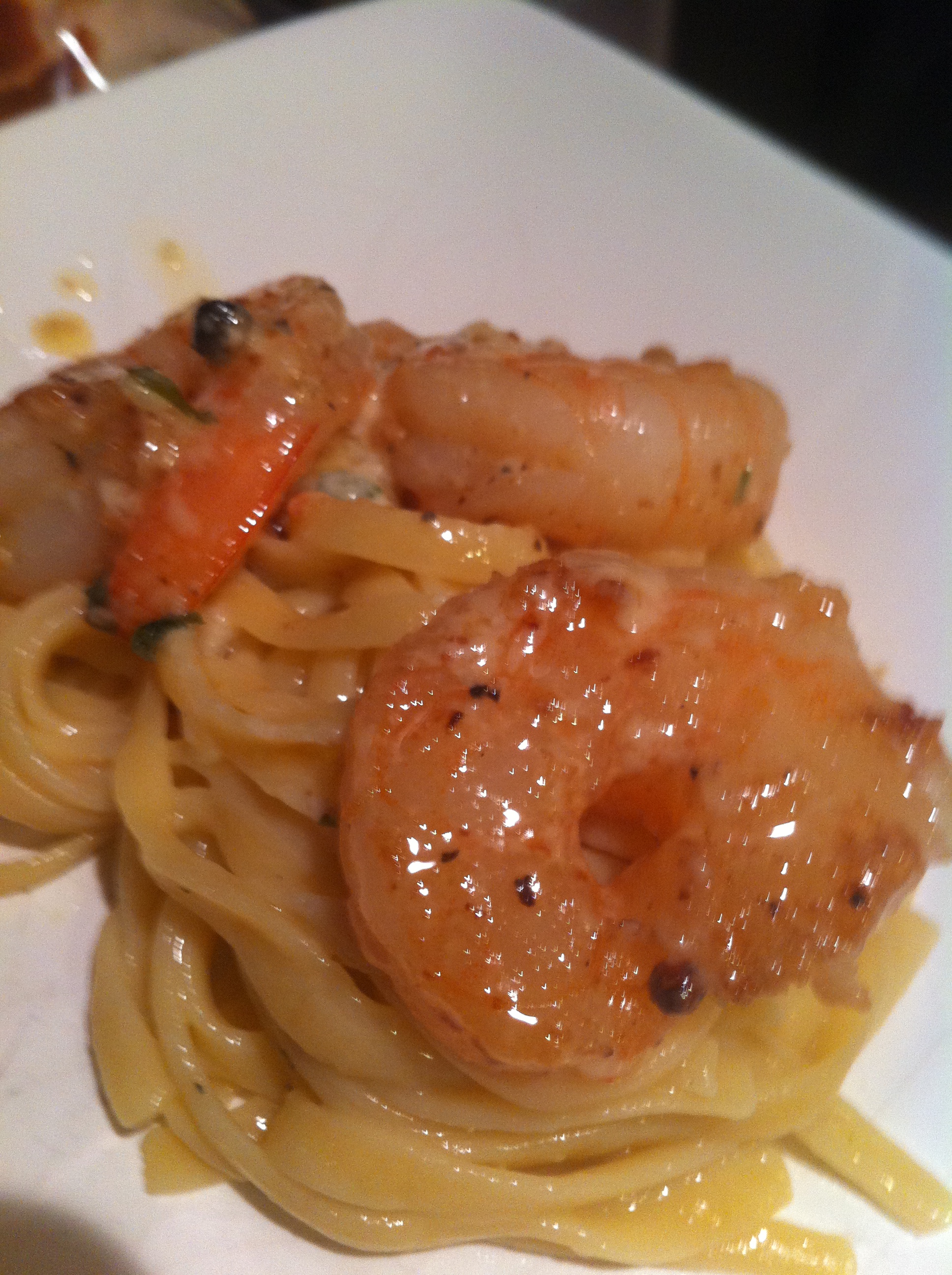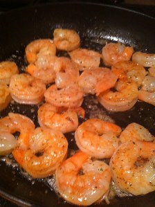 Take your medium deveined shrimp and add to a hot skillet with 2 tablespoon of butter and 2 tablespoon of olive oil, dash of salt and pepper and cayenne while searing shrimp. Cook your pasta. I use the freshest pasta available so it only takes 3-5 minutes.