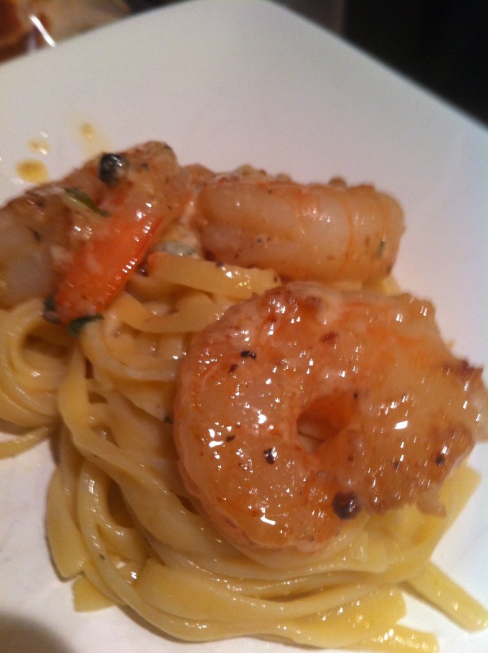 I was down in Cabo San Lucas Mexico a few weeks ago and I had this dish at one of my favorite restaurants in all of the world for Sushi. If you want the worlds best sushi go to Nik Sans in Cabo, it will blow your mind. That being said, we told them to bring the best five dishes and one of the great dishes they brought was gorgonzola shrimp on this rice paper. The next day I was floating around fishing (we caught 22 yellow tail tuna) and all I could think about was the Gorgonzola Shrimp dish. I had to figure it out. The first meal I made when I got home I put it together on pasta and it turned out great. It is pretty simple.