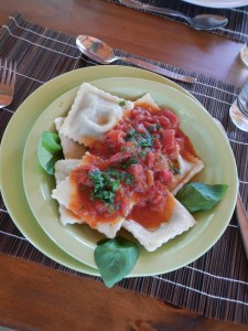 We made a quick stop by at a local ladies house who lived on the river that made fresh homemade pasta, then we went to our new friends house for lunch. He made his own sausages and bought the bread fresh in town.