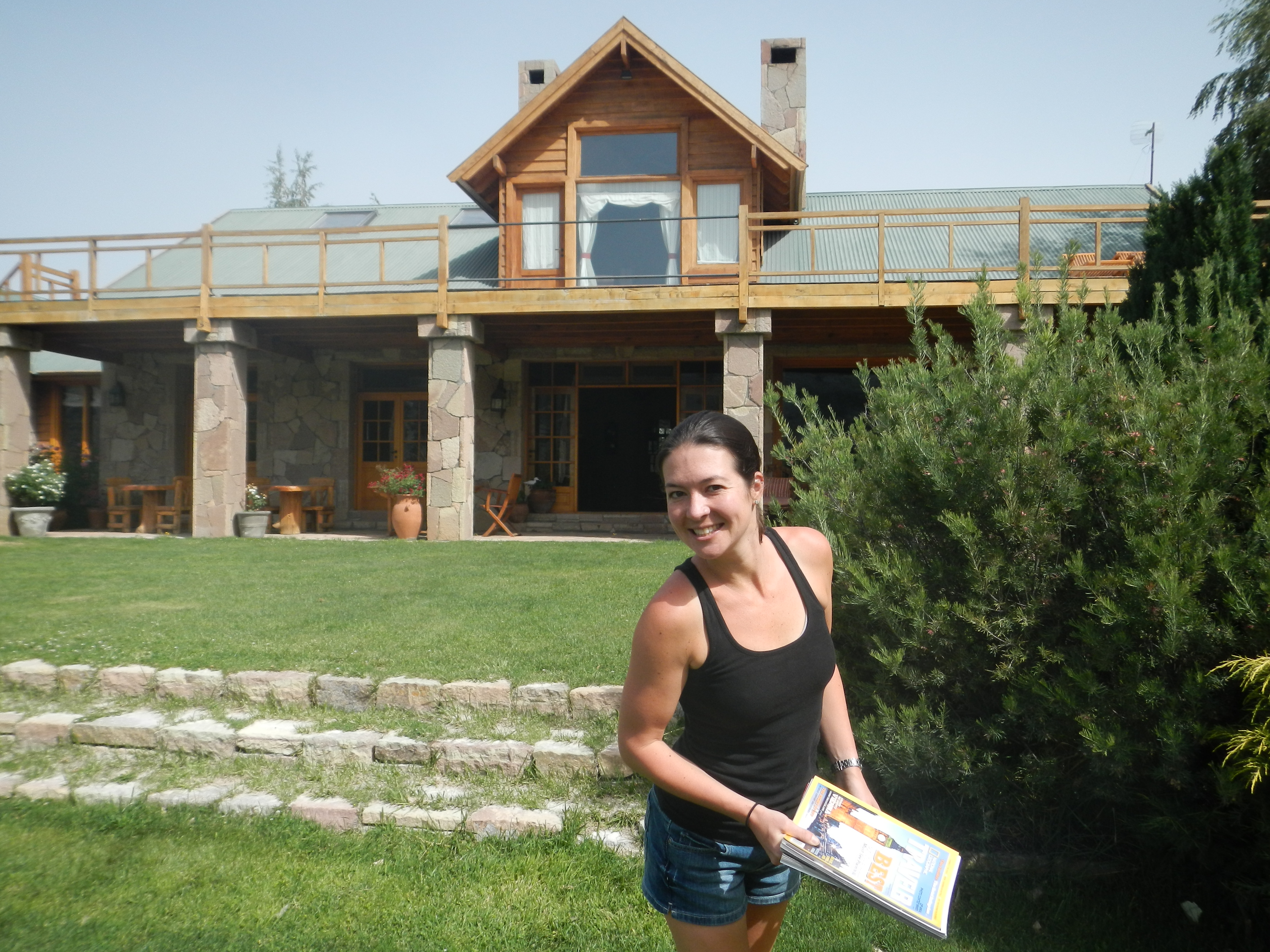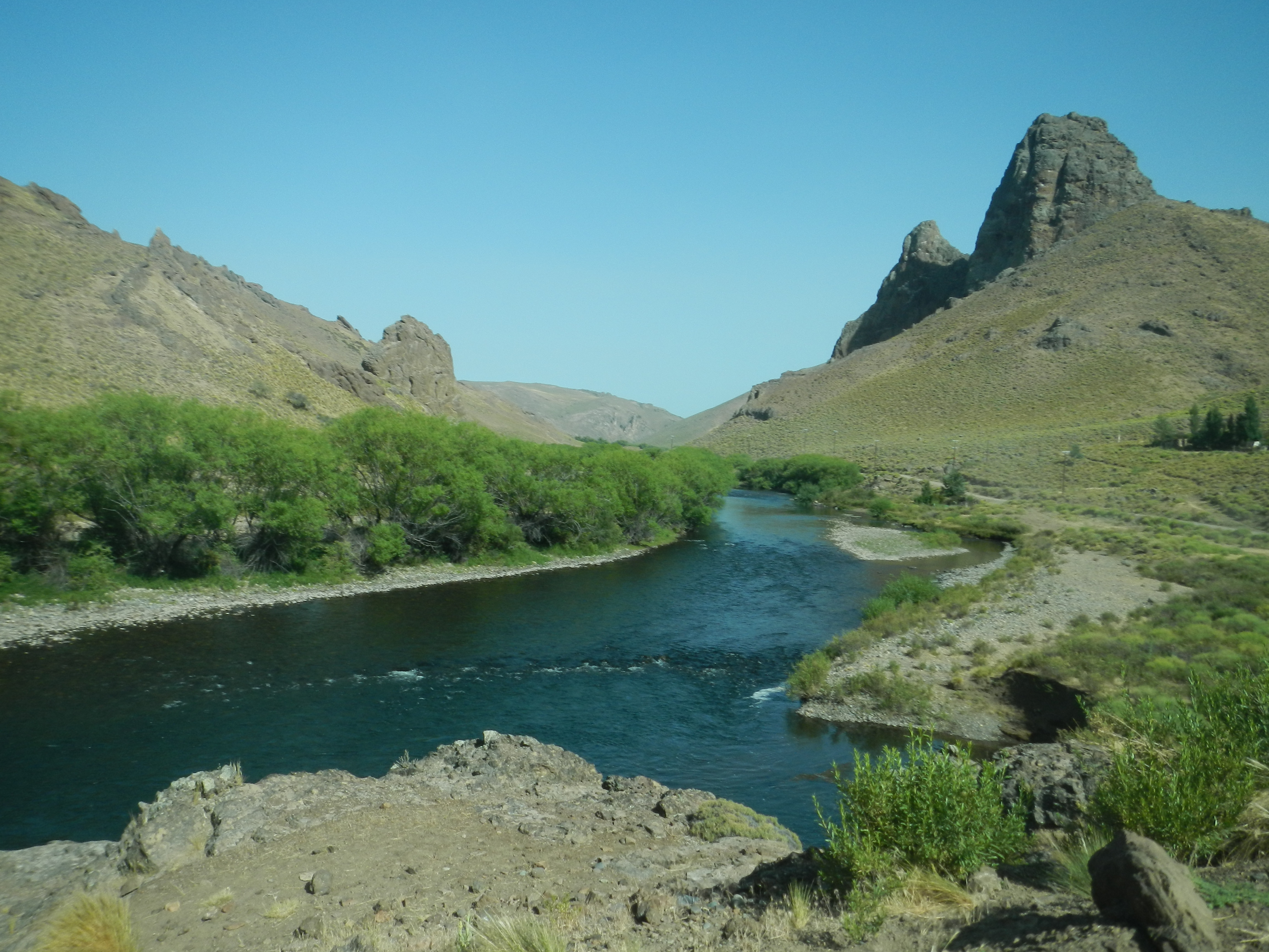 It was a 5 hour drive from Neuquin to San Martin, but I did it in 4 hours. Let me honest with you, the drive is like driving thru the desert on route 97 to Vegas. However, it would be fun with a very fast car because people pass each other like they are racing in the Indy 500 and there is no cops. Once you get about an hour from San Martin it begins to look very pretty. We arrive at the Patagonia River Ranch and instantly greeted by the staff. They are very nice and show us to our room immediately.