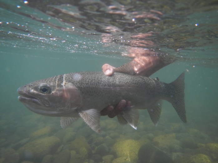 My casting started to get even better and I was rolling through branches with precision. Even Nicko was impressed for those 5 minutes, challenging me to put the fly in places he knew I couldn’t do, but those 5 minutes….I was like Brad Pitt in the movie “River runs through it”. I went two days without losing a fly, a river record. The next hour I made Nicko call me Brad. Steph later steals a fish from underneath me.
