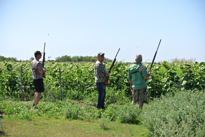 He yelled back he would meet me in the middle. Soon, Dave came down for a frosty and we all three shot some birds together. The next day they took us to a prime hunting area with a sunflower seed farm, and the doves were wreaking havoc on this farmers crop.