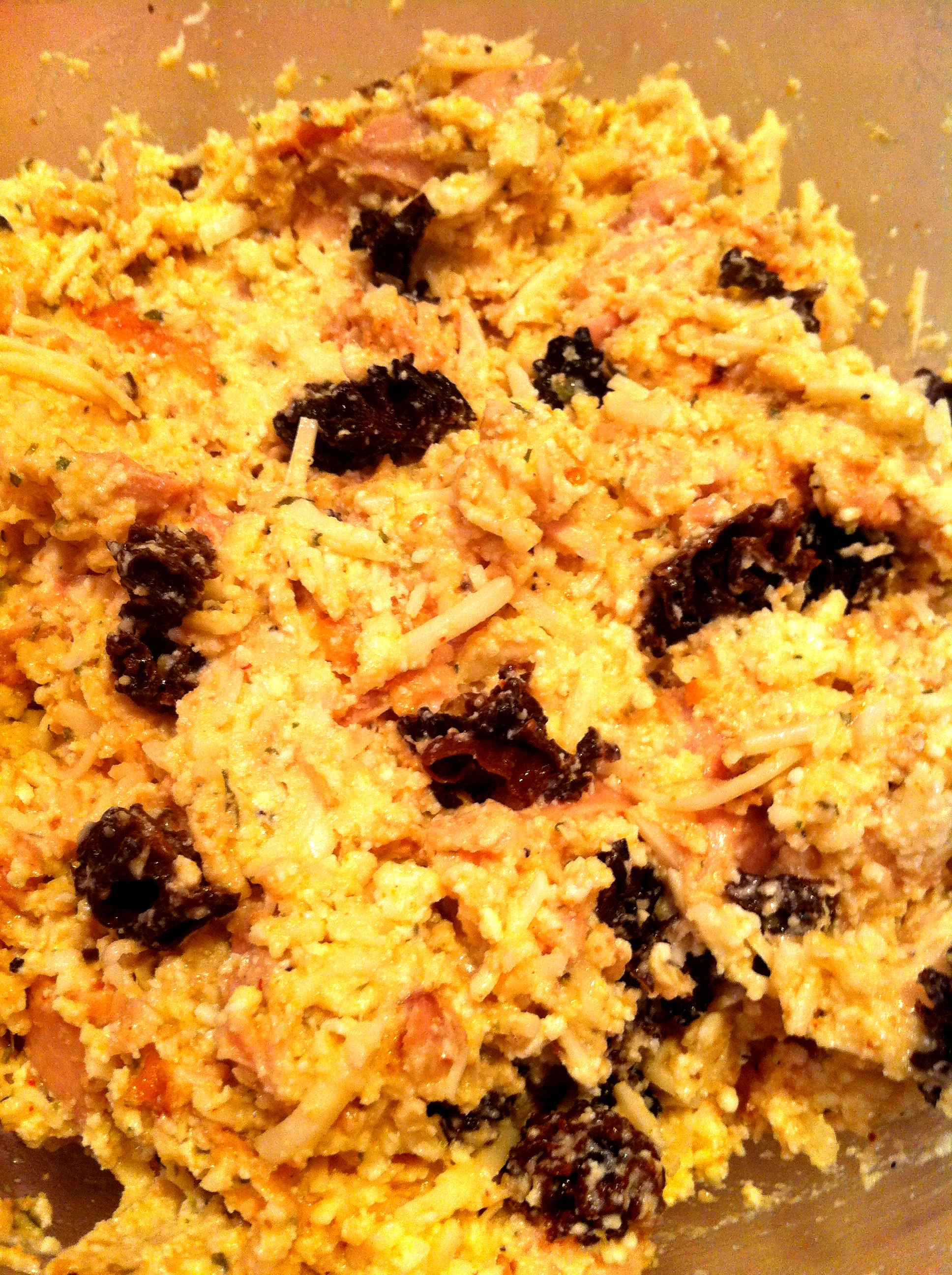 After the brine I smoked them on 200 degrees for 1.5 hours. Remove and chop into pieces. Do not worry if they are a little pink in the middle, it is okay because they will finish in the oven. You want them moist in the cheese mixture.