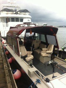 The second most important factor is pay attention to the depths, I run a Simrad electronics for echo, chart and radar. I pay a lot of attention to the little imperfections that may produce holes or divots in the river ground that may allow fish to hold and rest….and perhaps bite. Some boats run over these little honey holes at 3.5 mph, I come of the T-1 a bit to drop my lead. Some of my fish have been taken this way. If the water height is up, this means the fish are running up the sides and we found that a lot of them were suspended. When you have the best electronics out on the water (only two on the West Coast have this technology). We were able to come off the bottom and target them…which we did.