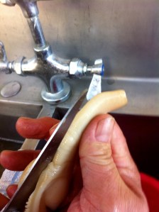 4. Once the clam neck is open you will see a small ventricle tube that runs up the neck. Make a cut that opens that ventricle all the way to the top of the neck.