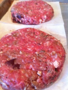 I usually cover the burger and put on a cookie sheet back into the fridge while I make my special Greek Tzatziki sauce. If you think you are going to go straight to the grill, make sure to make the sauce first and let it sit in the fridge for at least an hour.