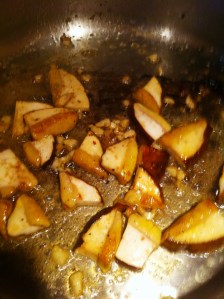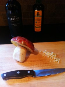 I figured the best way to prepare this would be simply using fresh garlic, a tablespoon of butter, with olive oil on medium heat. I do not advise high heat with this mushroom. Begin with caramelizing the garlic in the olive oil and butter, then after half way to the garlic turning brown add the mushrooms. My season steak is already off the grill and resting.
