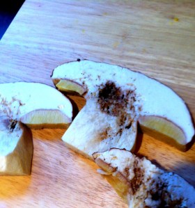 I was a little discouraged because this Bolete was barely visible and fresh. I guess the bugs love them as much as humans do. I lost half of my King Bolete but was able to save the other half if that.