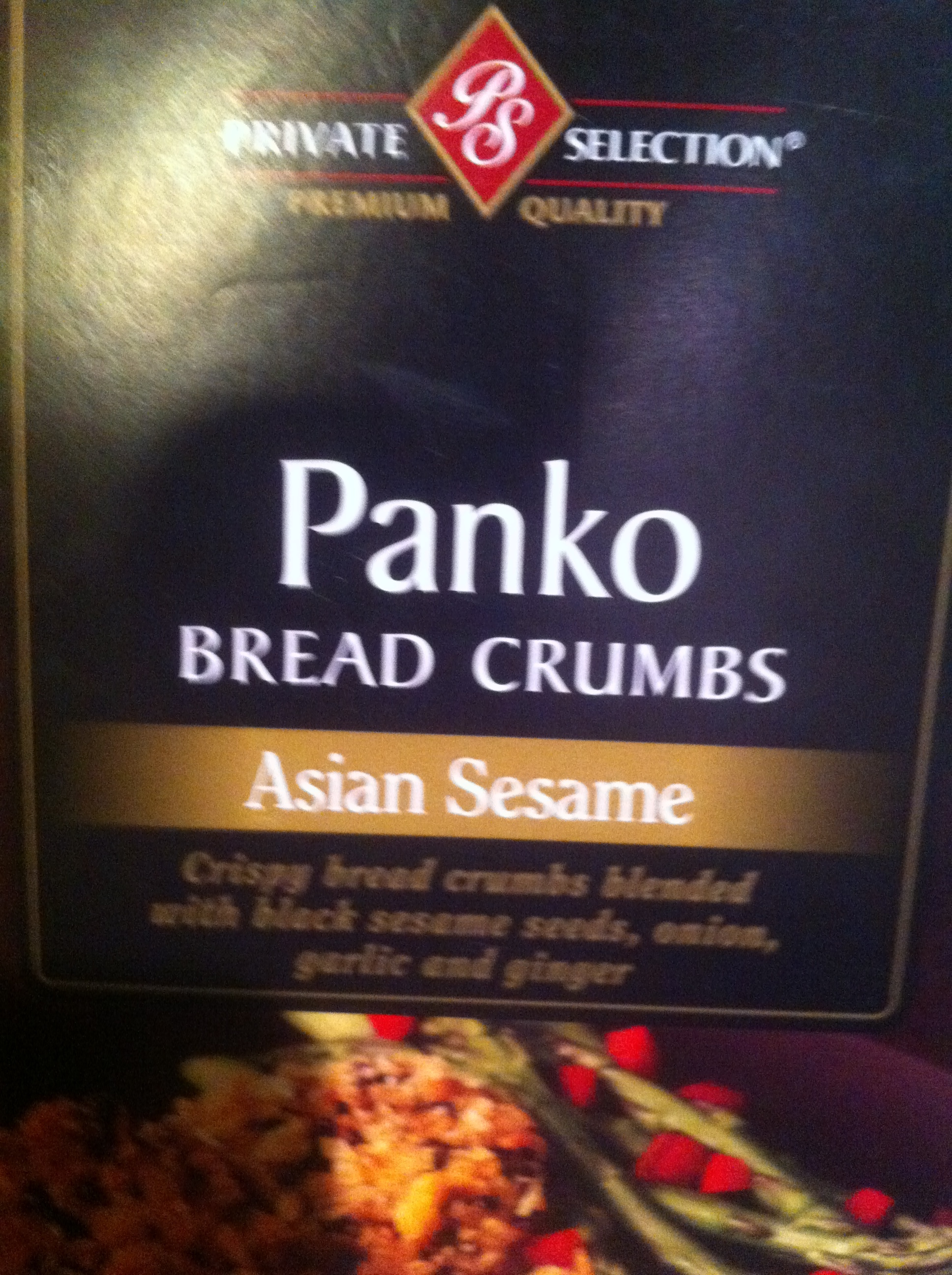 First thing you need is the Asian Sesame bread crumbs. You can get this in an Asian market, but you can also get it at Safeway.
