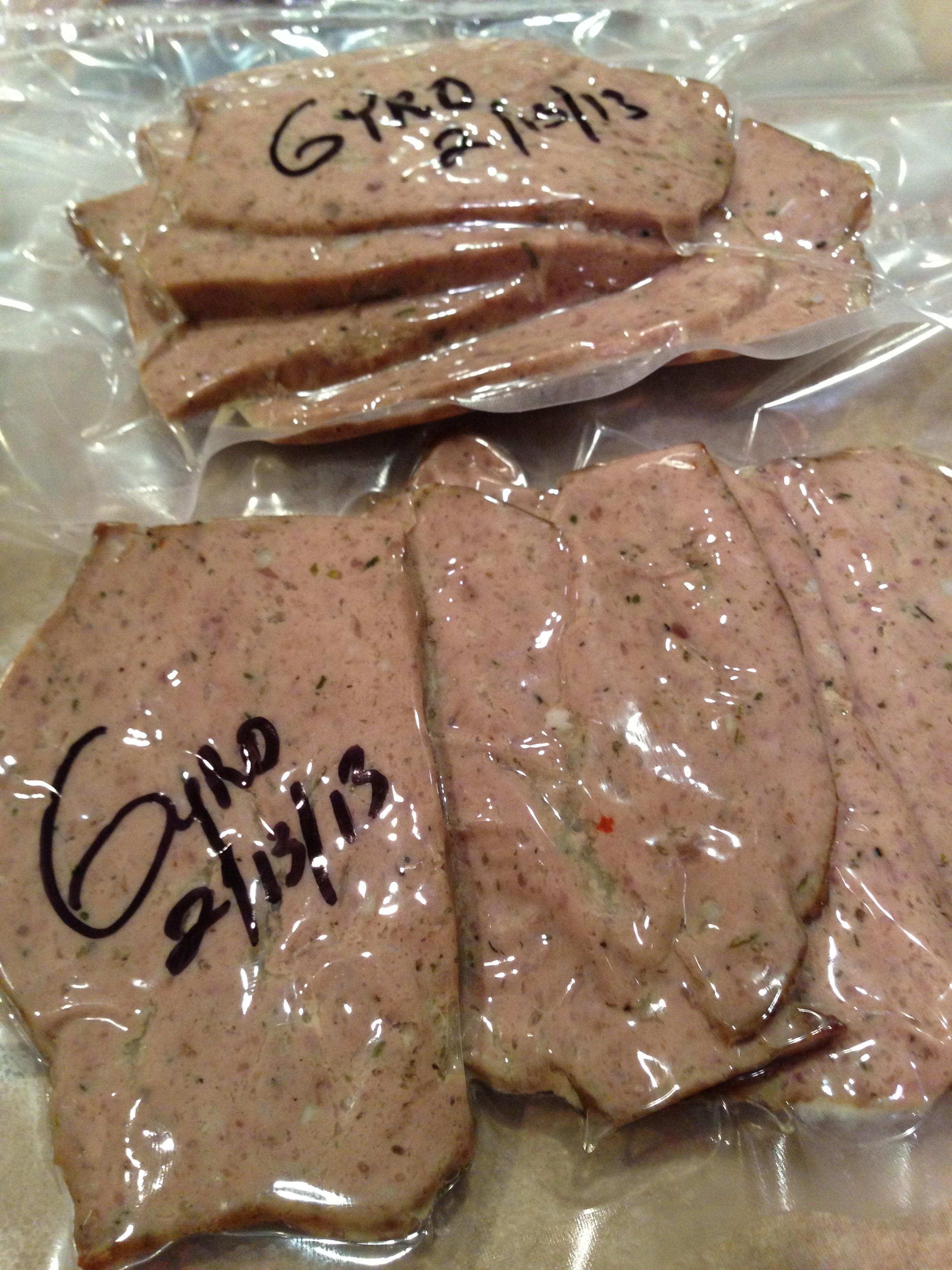 You are going to have left over meat, and that is okay. I van-pac my Gyro meat for another battle in the kitchen. It is fast this way and will impress your friends.