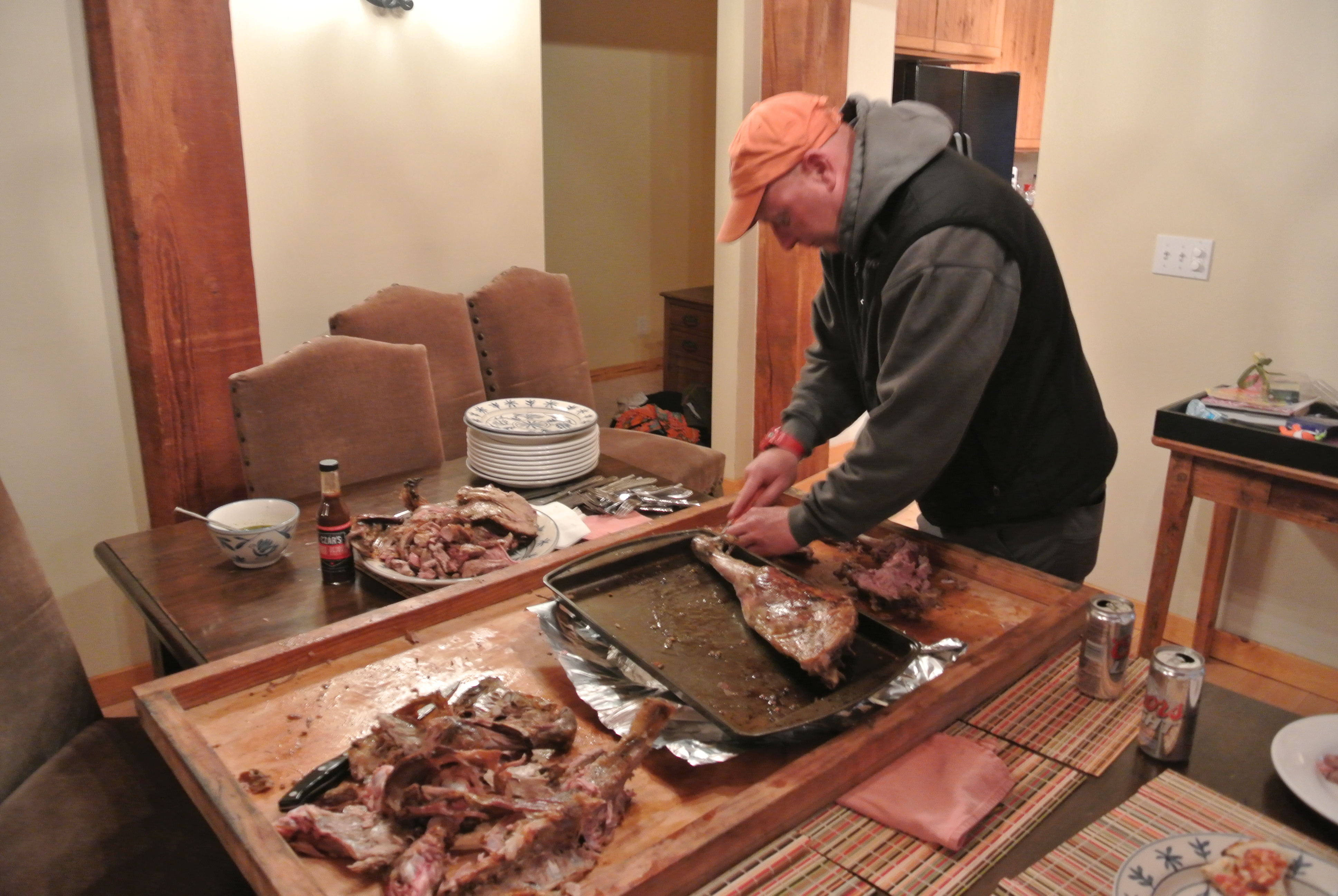 We had to recruit a new “Cut” man to begin to slicing up the finished lamb because our man was down. Trevor’s first question is if we had surgical gloves because he didn’t want to get the meat flavor on his hands. Todd and I looked at him like “Did you just say that?”.