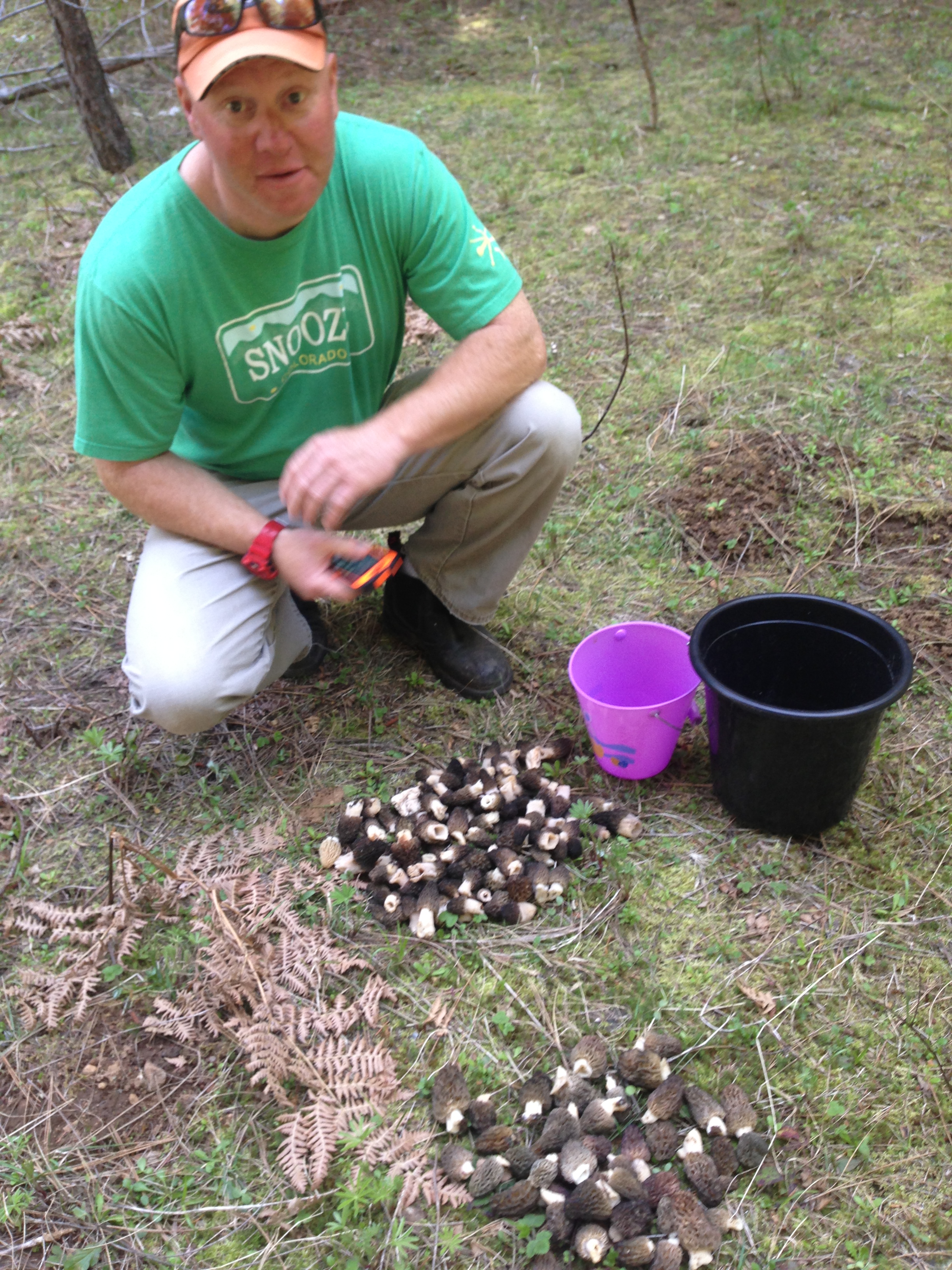 The War has begun for the Morel King Title and the holder of “Precious”. The Morels just started to pop with this burst of warm weather and I am predicting a great season for 2013. Yesterday, April 25th 2013 I took the day off work to go enjoy a full day of walking in the woods with my good buddy and competitor Trevor Storlie. We had a nice drive up to Trout Lake, Washington where I knew a prime spot for Morels. We first had to stop at the gas station so I could fill up and Trevor could get a magazine with his picture in it. SO VAIN!