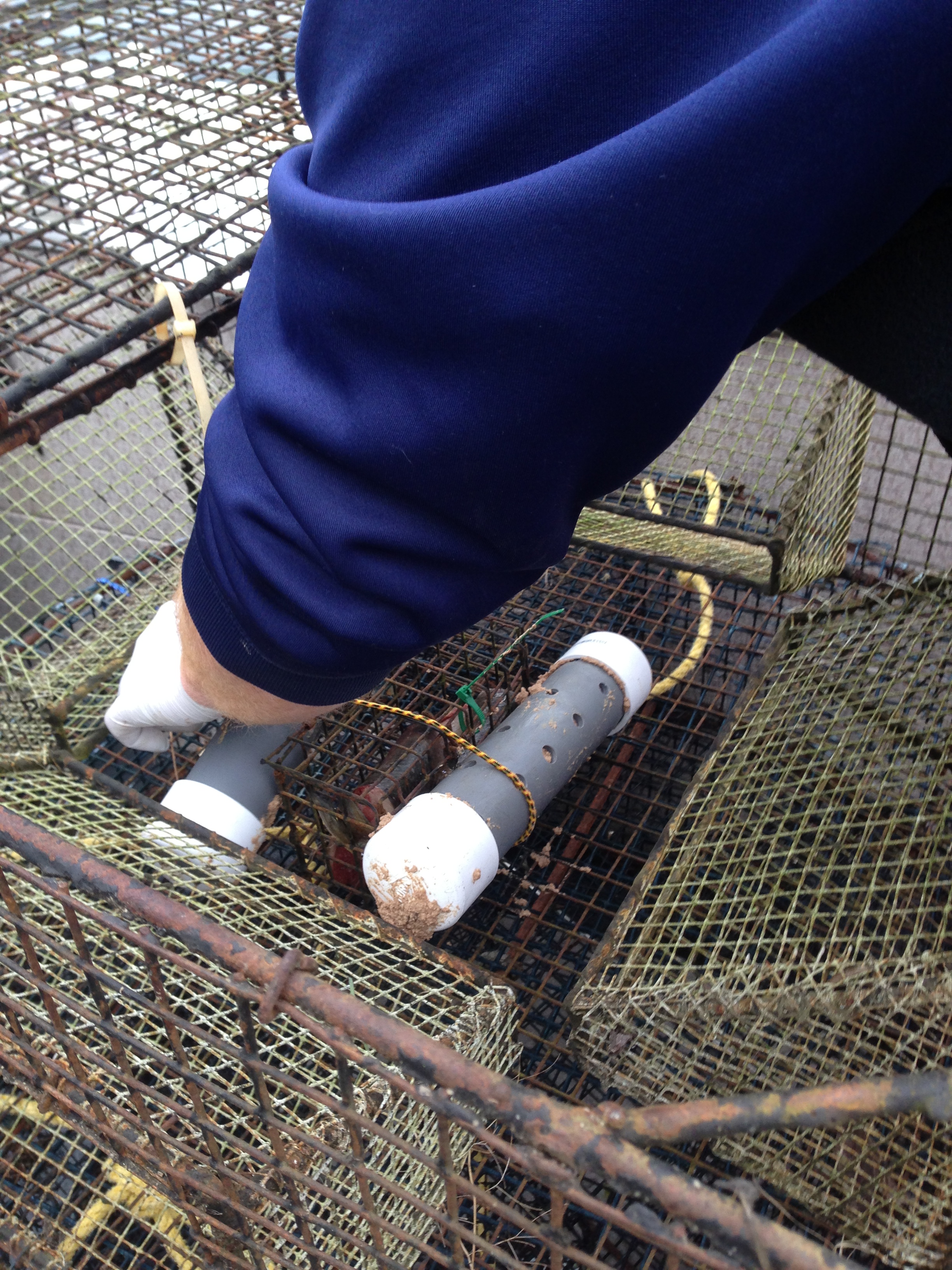 Then it was time to get to work. So Jason and Trevor showed us how to rig the shrimp traps, and get the buoys correct (Washington has stupid rules like you have to all use yellow buoys? Imagine a million yellow buoys out there). You have to rig 300 feet of lead rope, then build your bait holders that will hold your magical chode.