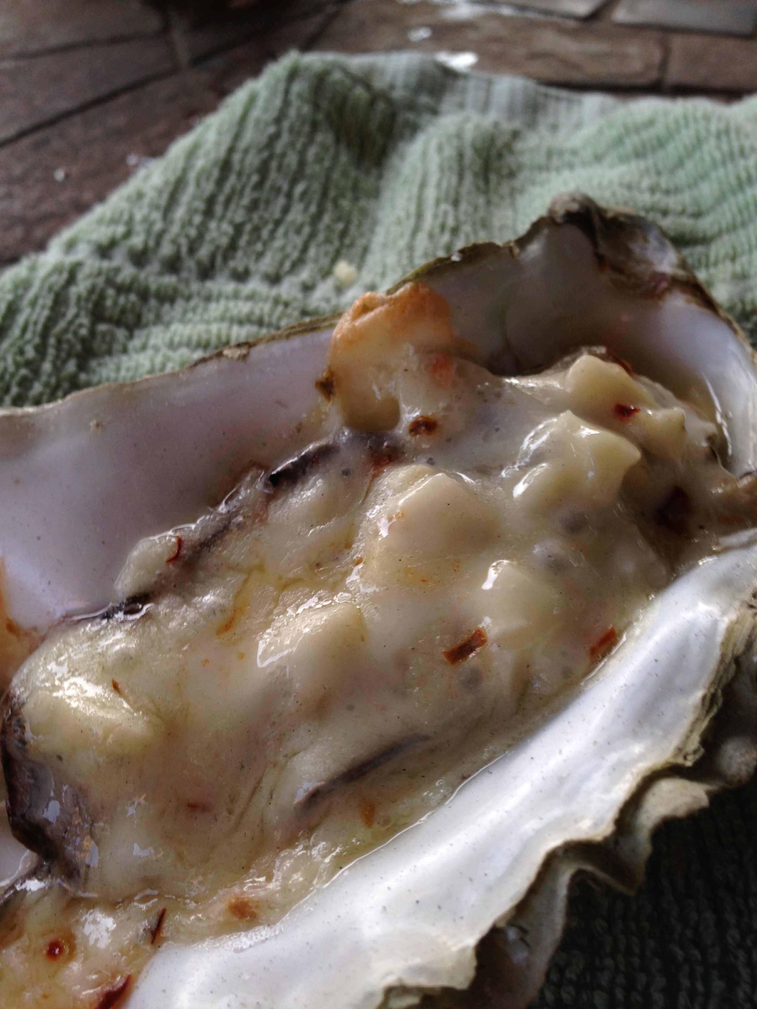 I learned this technique from Grover for BBQ Oysters. Butter, Garlic, and a slice of pepper jack cheese. BBQ until the cheese is melted, and let cool so your mouth does not burn and get ready for the taste rocket ship.