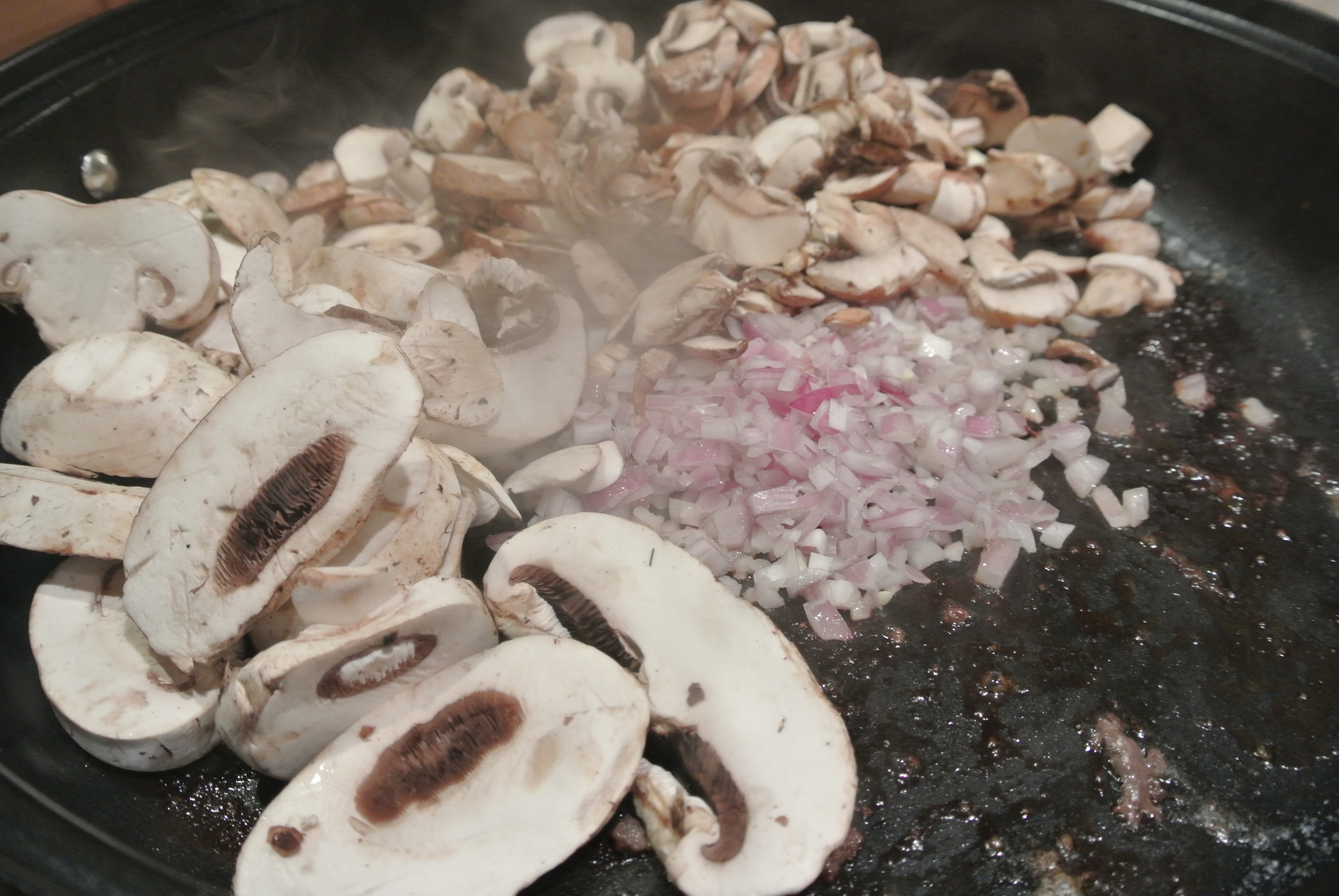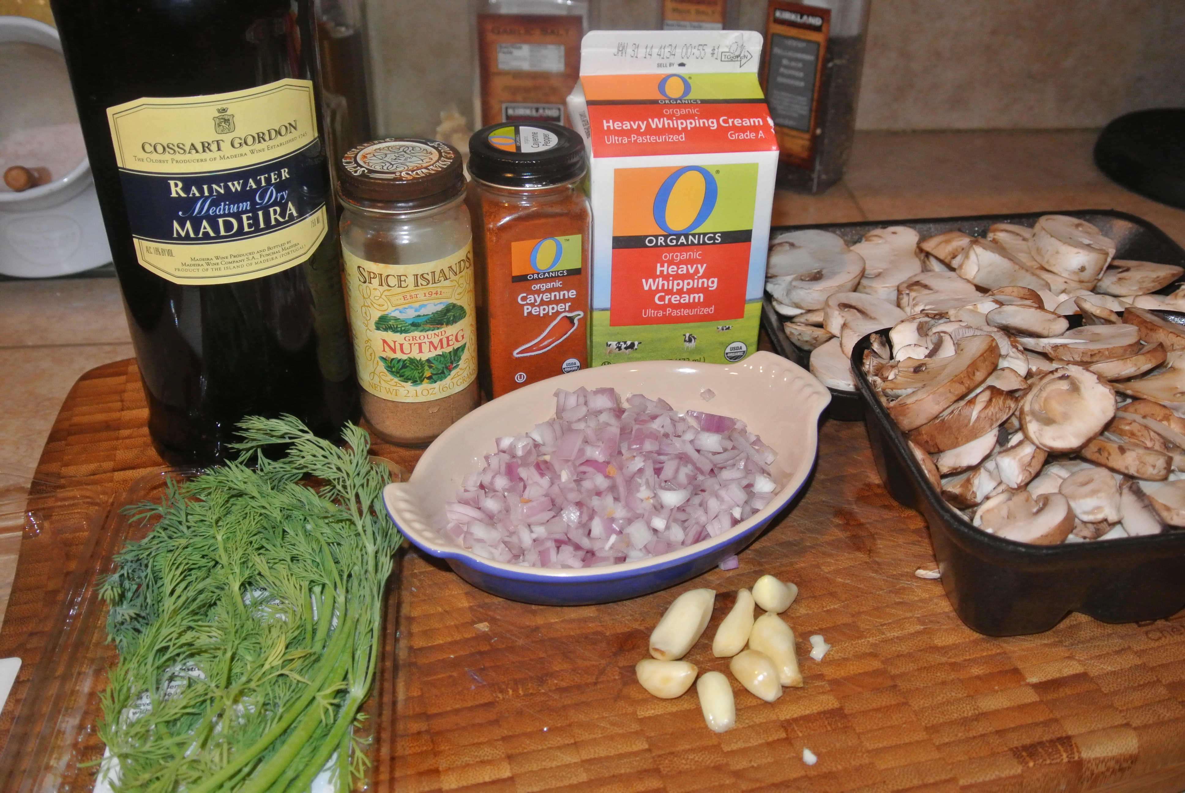 This takes about 4 minutes, but cook until the mushrooms are brown on high heat. Add Cayenne and Nutmeg and a couple of dashes of sea salt.
