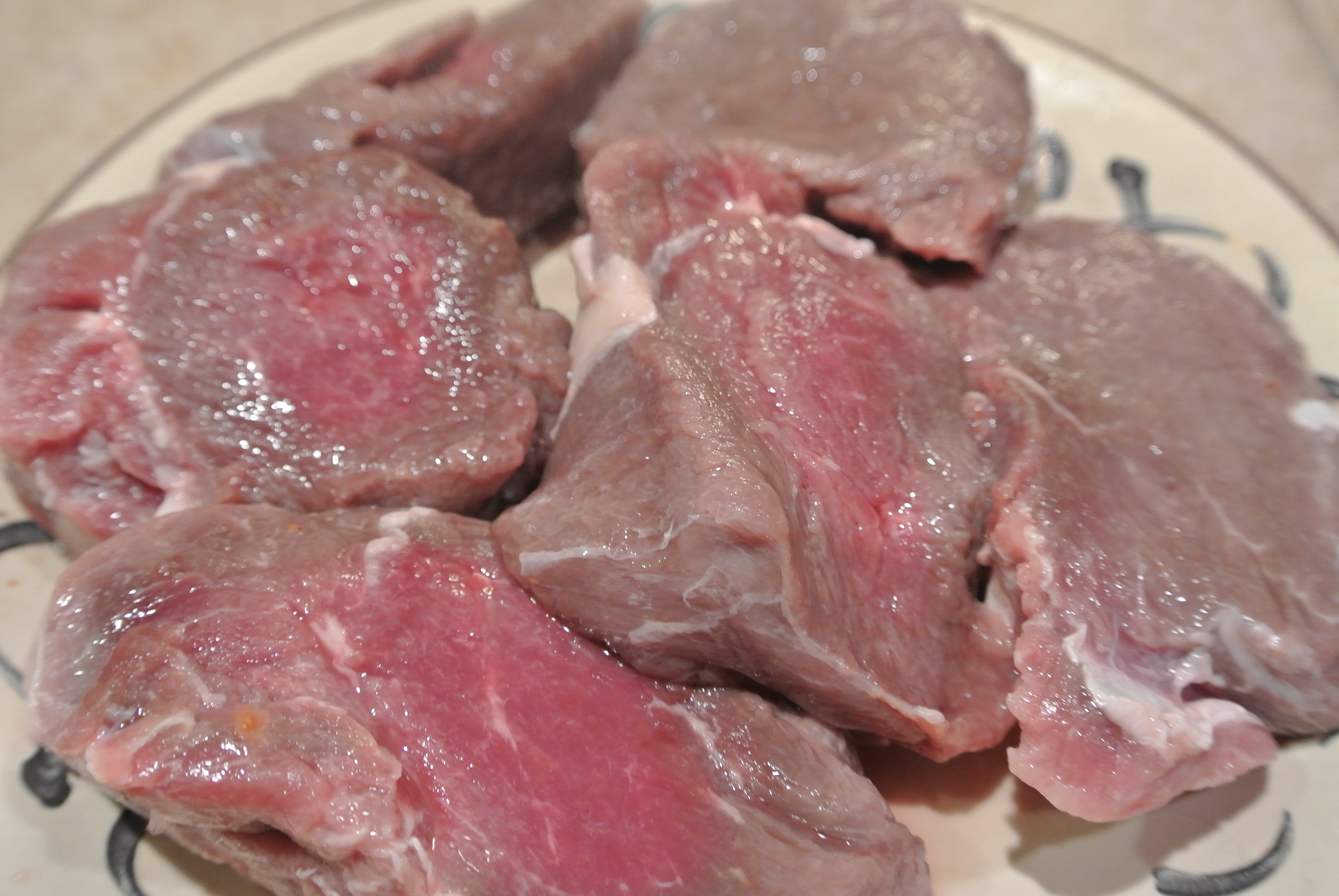 I am going to give you a few tricks of the trade on this one, especially for those of you that do not like the taste of venison. I take back strap and soak it in buttermilk over night. It takes the gamey taste out, but more importantly it makes the meat a little more moist. Soak over night, then gently wash off under water and let your meat come to room temperature.