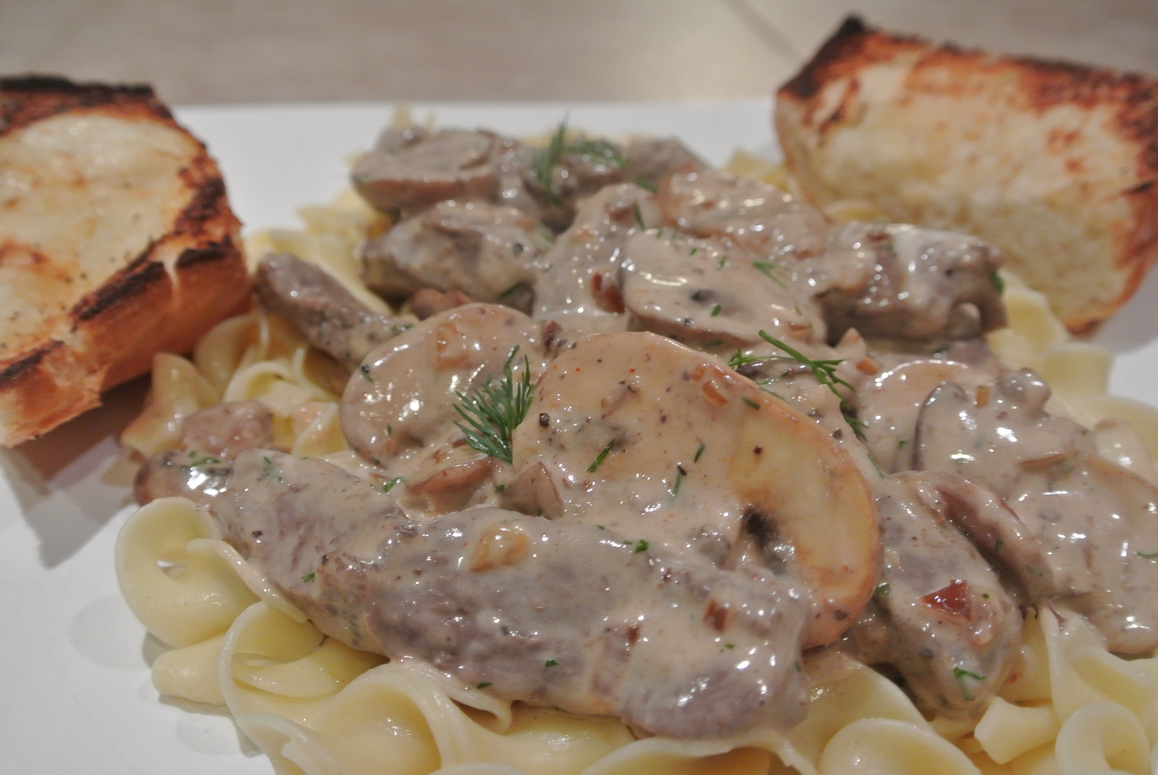 If you asked my oldest daughter Megan what one of my favorite dishes I love to eat about twice a year, without a doubt it would be the German Stroganoff. I just texted her at college and she nailed it. If it is made correctly, it is one of my good ole comfort food go to dishes.