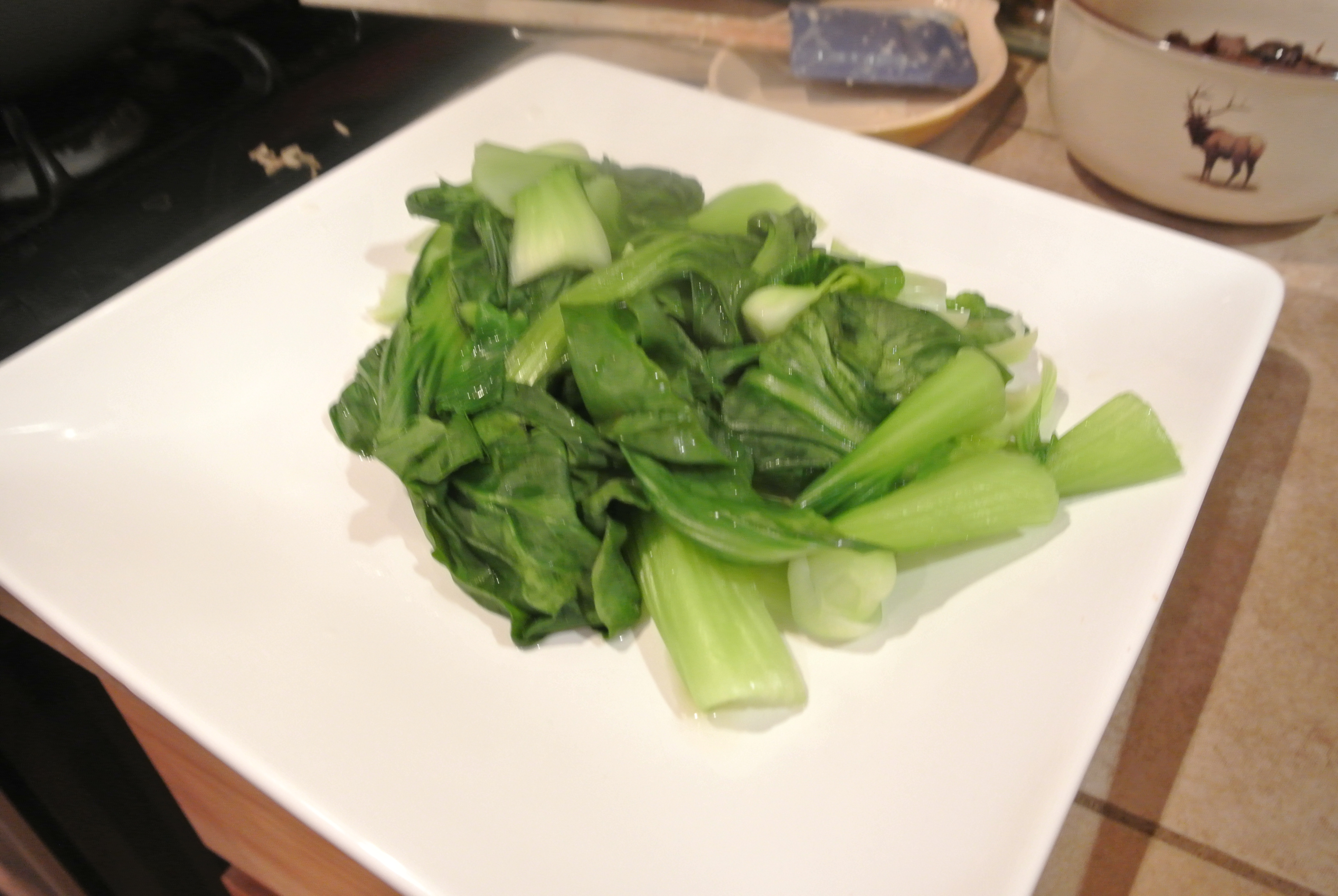I told you all that I was going to make some more Bok Choy and true to my word made it the other night as a side dish. My youngest daughter who is three loves to run around the kitchen yelling BOK CHOY. She really gets me laughing. This is the easiest dish to prepare and it is loaded with flavor.