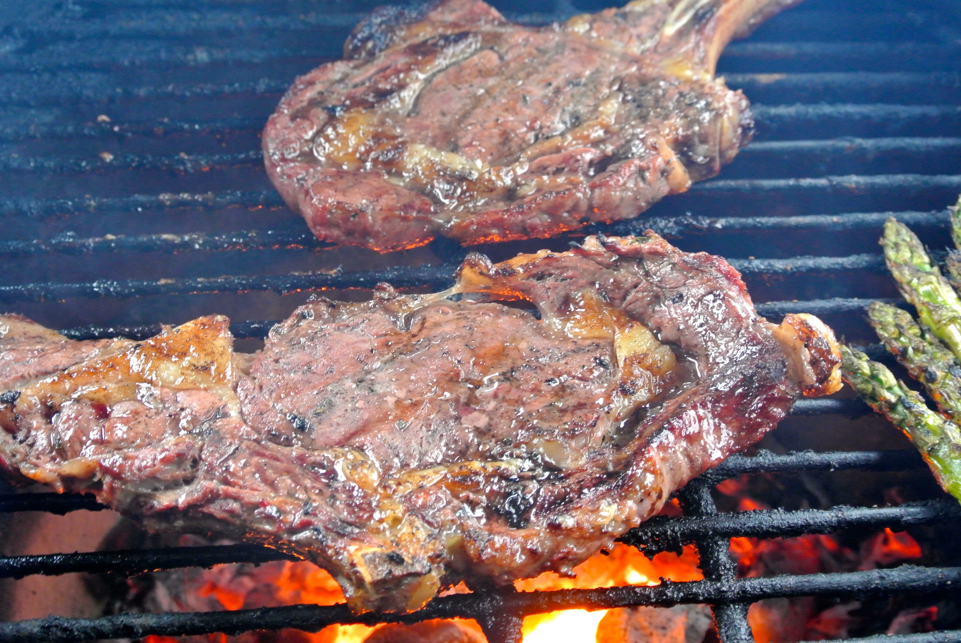 The bison steaks were put on high heat 10 minutes before. When cooking any ribeye direct high flame heat is good. What is important is that you keep an eye on the bbq so you do not totally burn your steaks, but do not panic when the flame is hitting your ribeye, it is okay, just be calm.