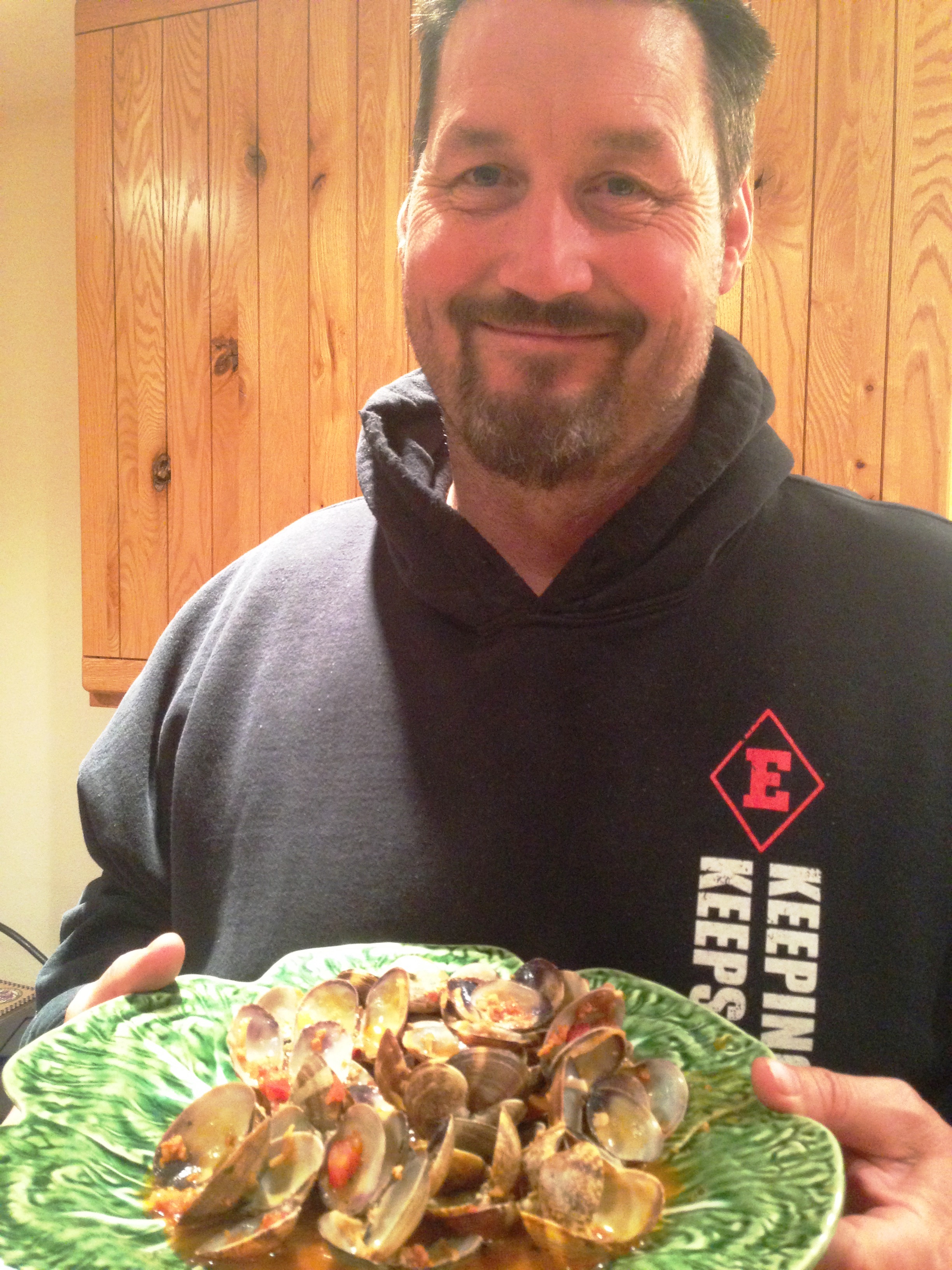 Plate the clams, you can add chopped parsley for looks, but I really didn’t have the time with these vultures all over my grill. Serve with toasted bread.