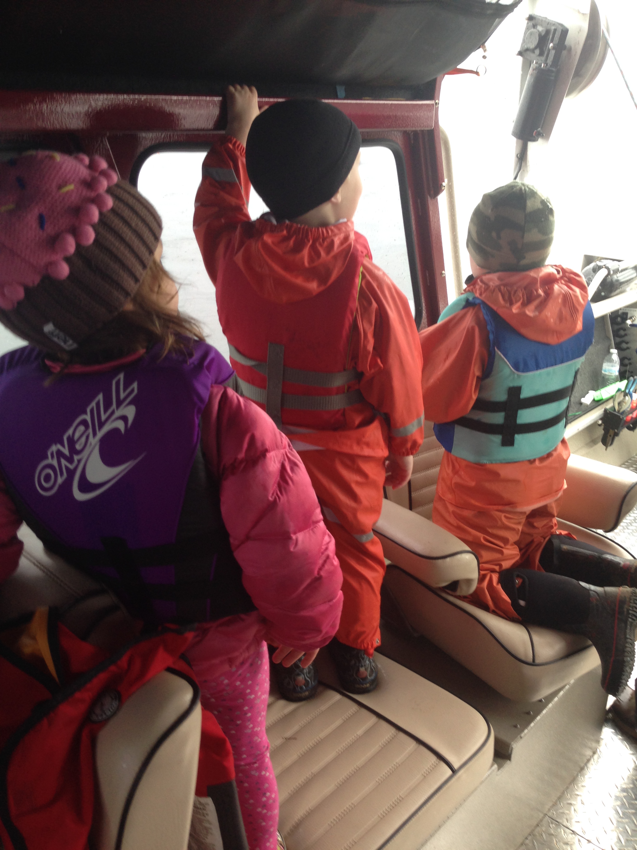 The season is only fours long. So once 9 am hits, the pots go over and soak for 45 minutes. The pots are down 300 feet, so you have to make sure you watch the drift and put the pots out without tangling your lines. Then the rains came, and they brought a nasty beat down of epic proportions. Jan, Trevor, and Steph worked the back of the boat during that storm. Mike and Ben got their limits and went back to the house to make room for the kids. They were enjoying music, and fresh sauté shrimp we later found out. My job though it was dry, was to keep us from drifting into all the other boats and their pots, and keep an eye on ours.
