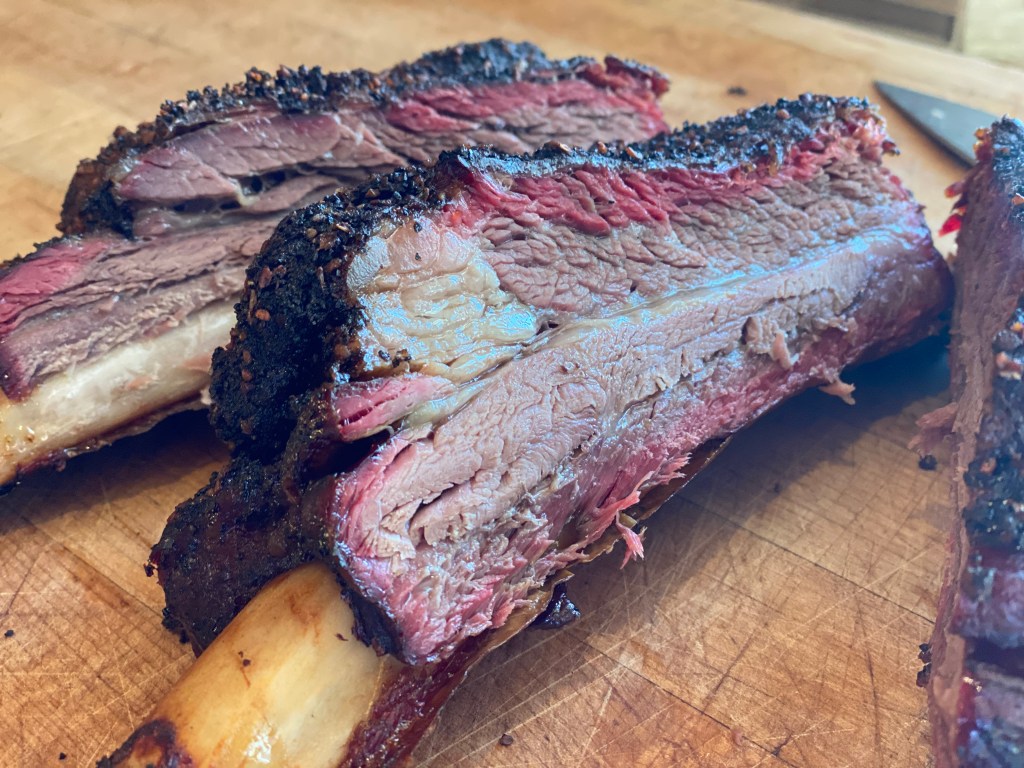 When I get on a scent….I usually stay on it until I find what I am hunting for. I had some beef ribs down in Dallas, Texas a few years ago. A little bbq joint called The Pecan lodge, and I was on a brisket research project so I went to several of the best rated bbq places in the state that was within a 300 mile radius. While I was in line, there was a local guy, that told me “you better order the ribs, they sell out in 20 minutes”. So I did…along with the brisket. I was telling myself as I ate one, this is it…..this is what I have to master.